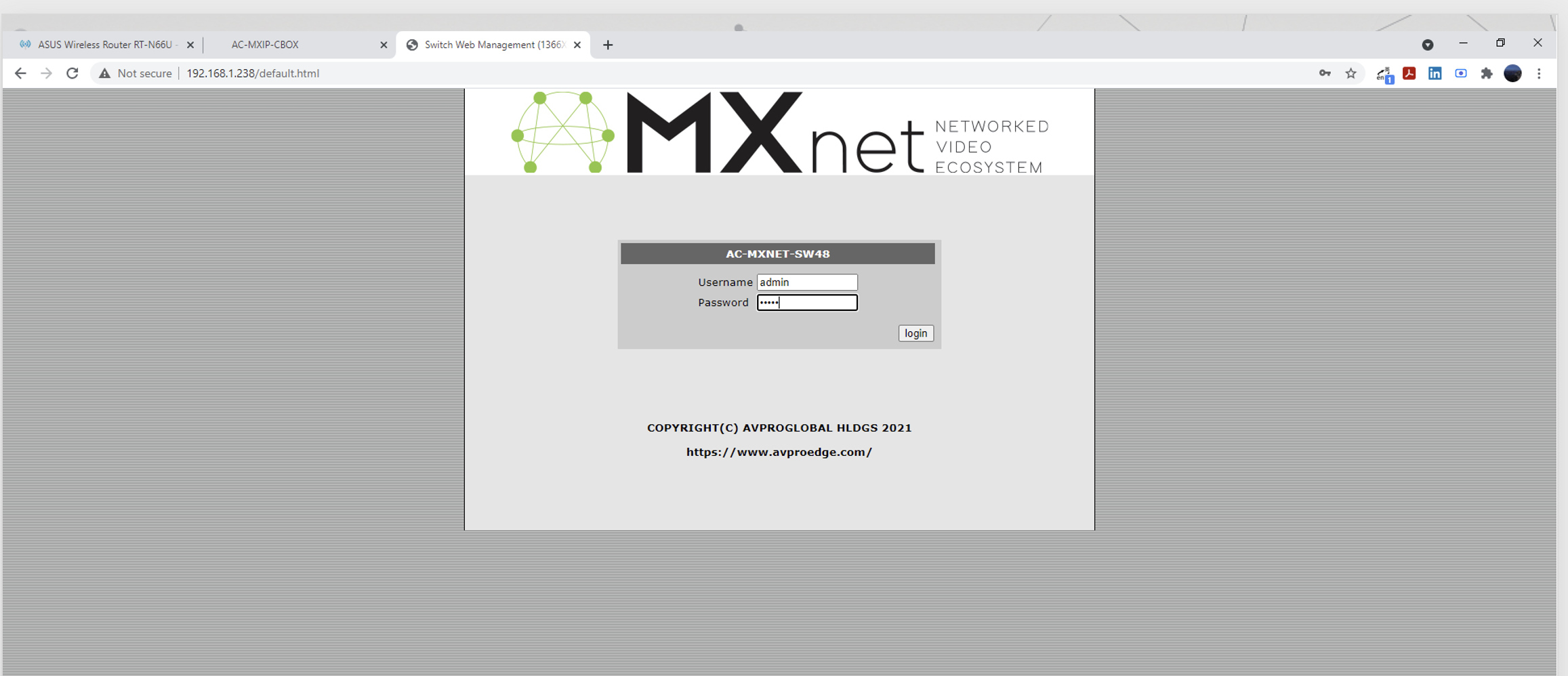 To change the IP address of the switch to something valid for your network open up a browser and go to 192.168.1.238 and login with admin admin.
