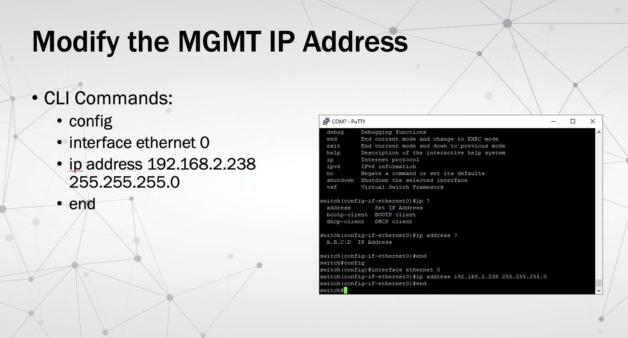 Once you have done this, you can now change the IP address of the switch via the web based GUI of the switch OR by using the CLI interface of the switch.